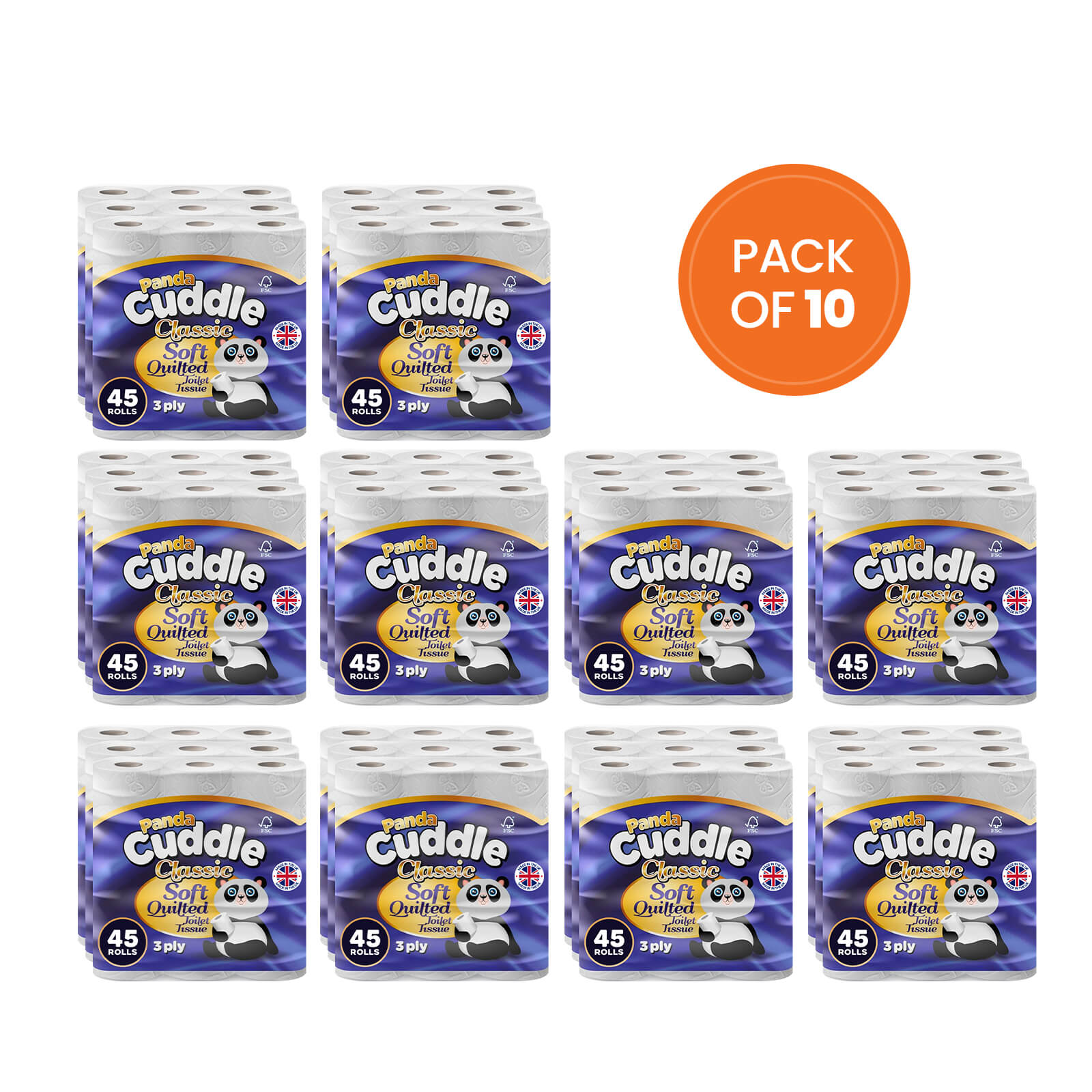 Panda Cuddle Toilet Paper – 45 Rolls (3-Ply, Quilted, Unscented)