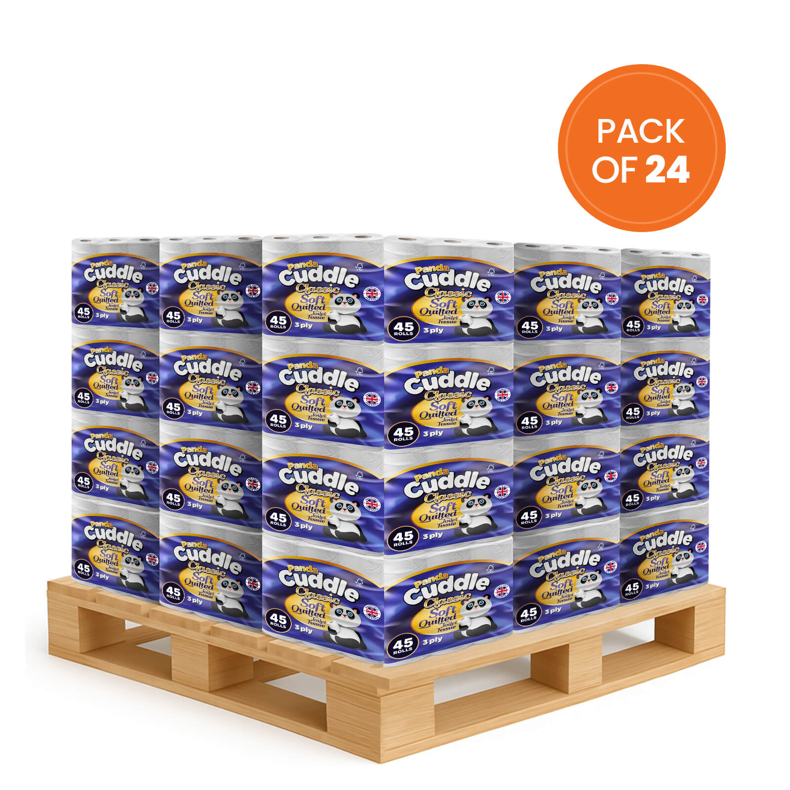 Enjoy everyday comfort with Panda Cuddle – a compact bulk case of 45 ultra-soft, 3-ply quilted toilet rolls. Unscented, gentle on skin and made from FSC-certified fibre, it’s a smart choice for homes, offices, salons, cafés and Airbnb lets.